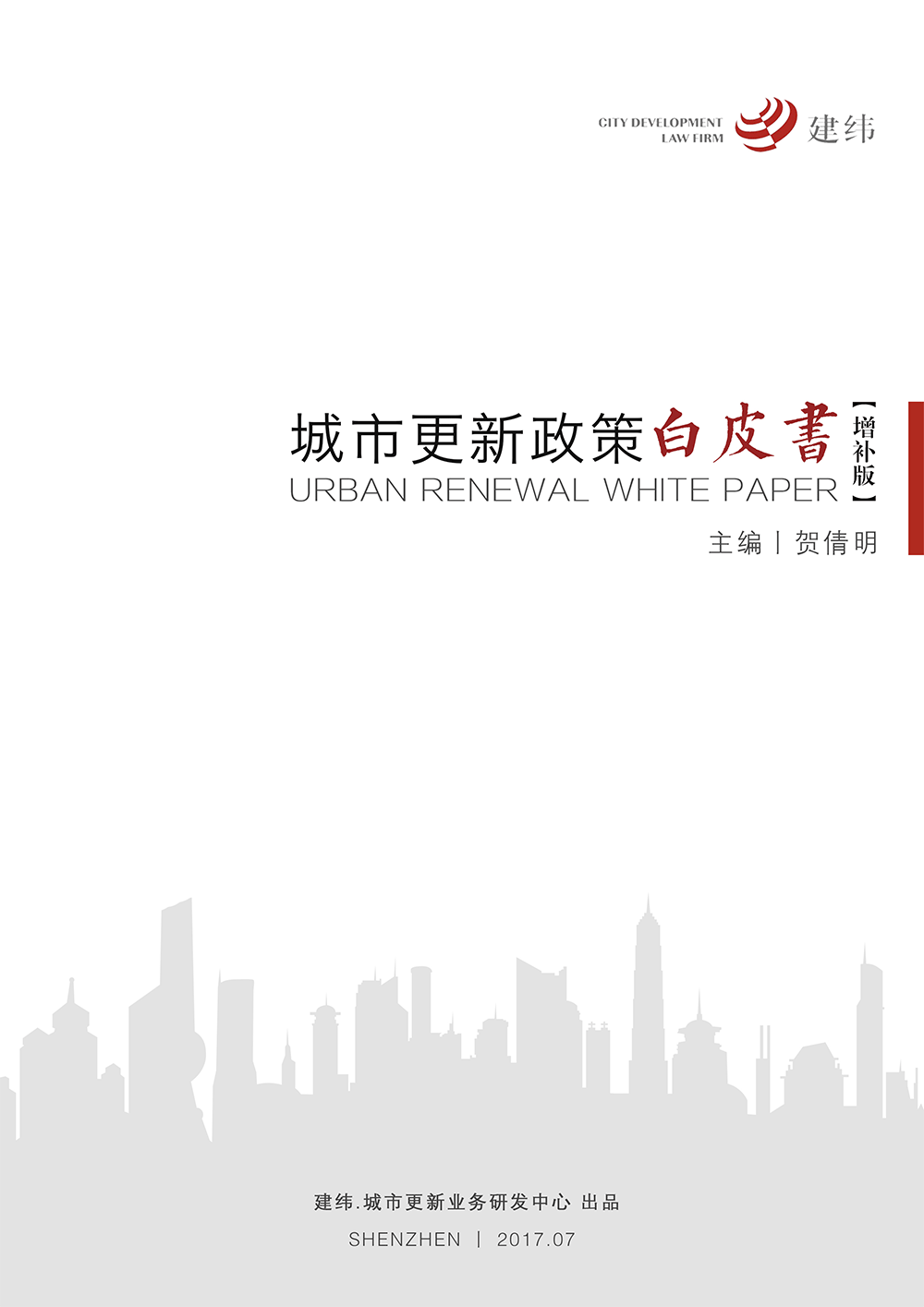 为助力各市场主体全面掌握城市更新最新动态,把握城市更新改革方向,建纬(深圳)律师事务所城市更新业务研发中心在《城市更新政策白皮书(2015-2016)》 基础上,及时收集、整理、研究2017年上半年政策新规,形成《城市更新政策白皮书 (增补版)》,以飨读者。