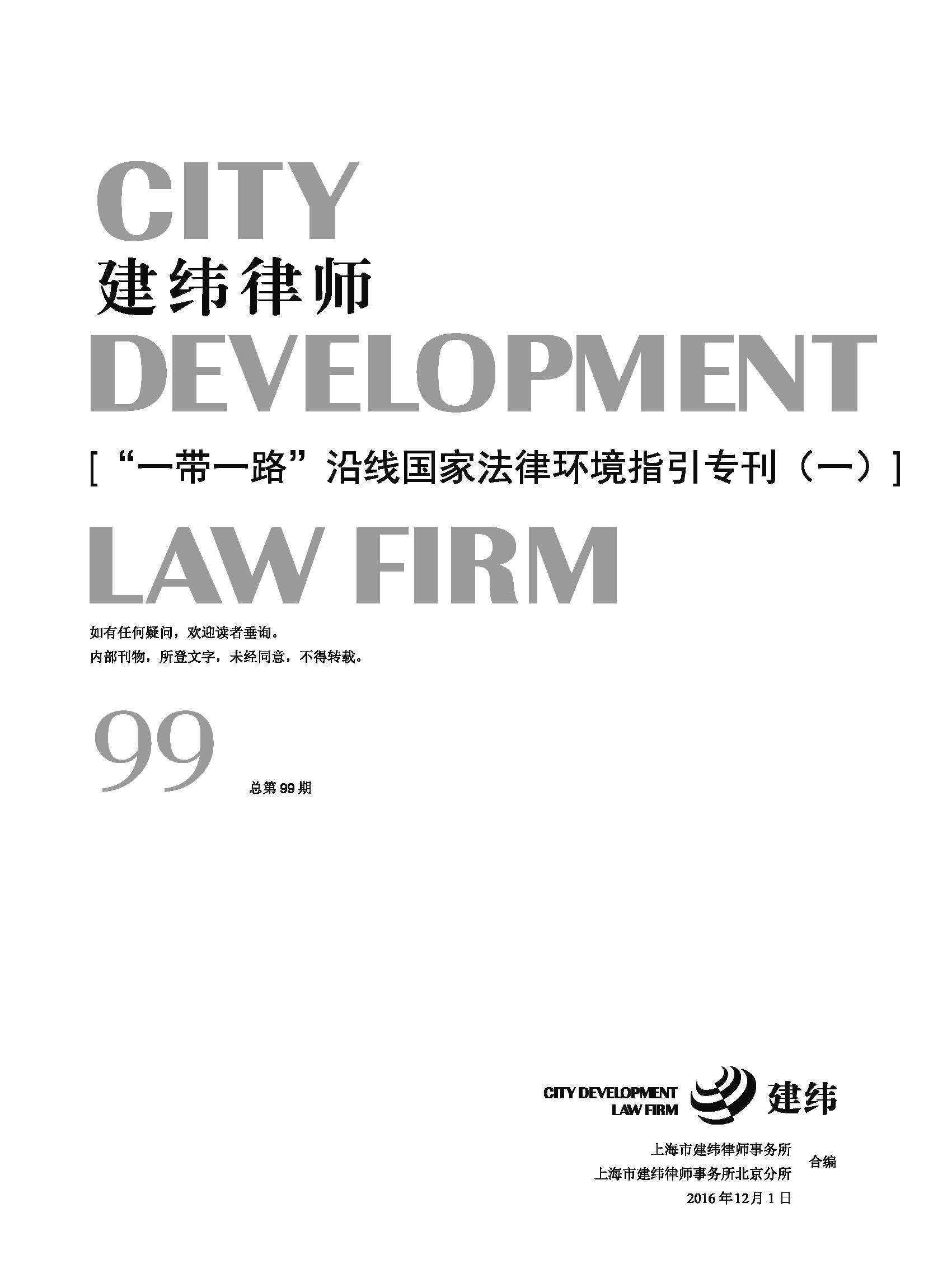 名称:《" 一带一路” 沿线国家法律环境指引专刊(一 )》