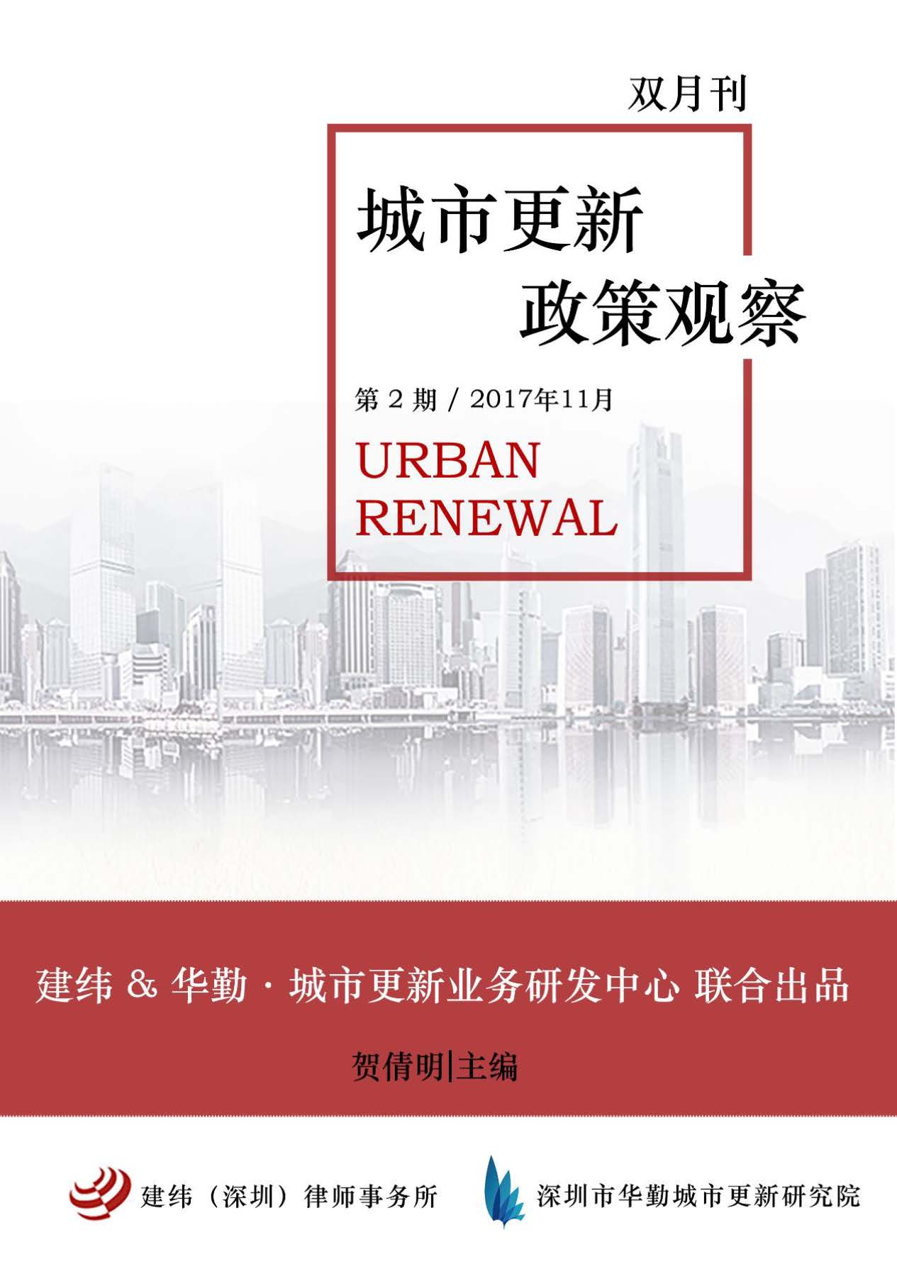 编者:建纬(深圳)律师事务所 出版时间:2017-11-29《城市更新政策观察》由建纬(深圳)律师事务所与深圳市华勤城市更新研究院联合出品,两月一刊,自2017年9月首期推出以来,迄今已更新至第二期。《城市更新政策观察》汇集了粤港澳大湾区城市更新政策资讯、行业观察以及相关行业资讯,致力于为粤港澳大湾区城市更新行业参与者和关注者提供有益的资讯参考。